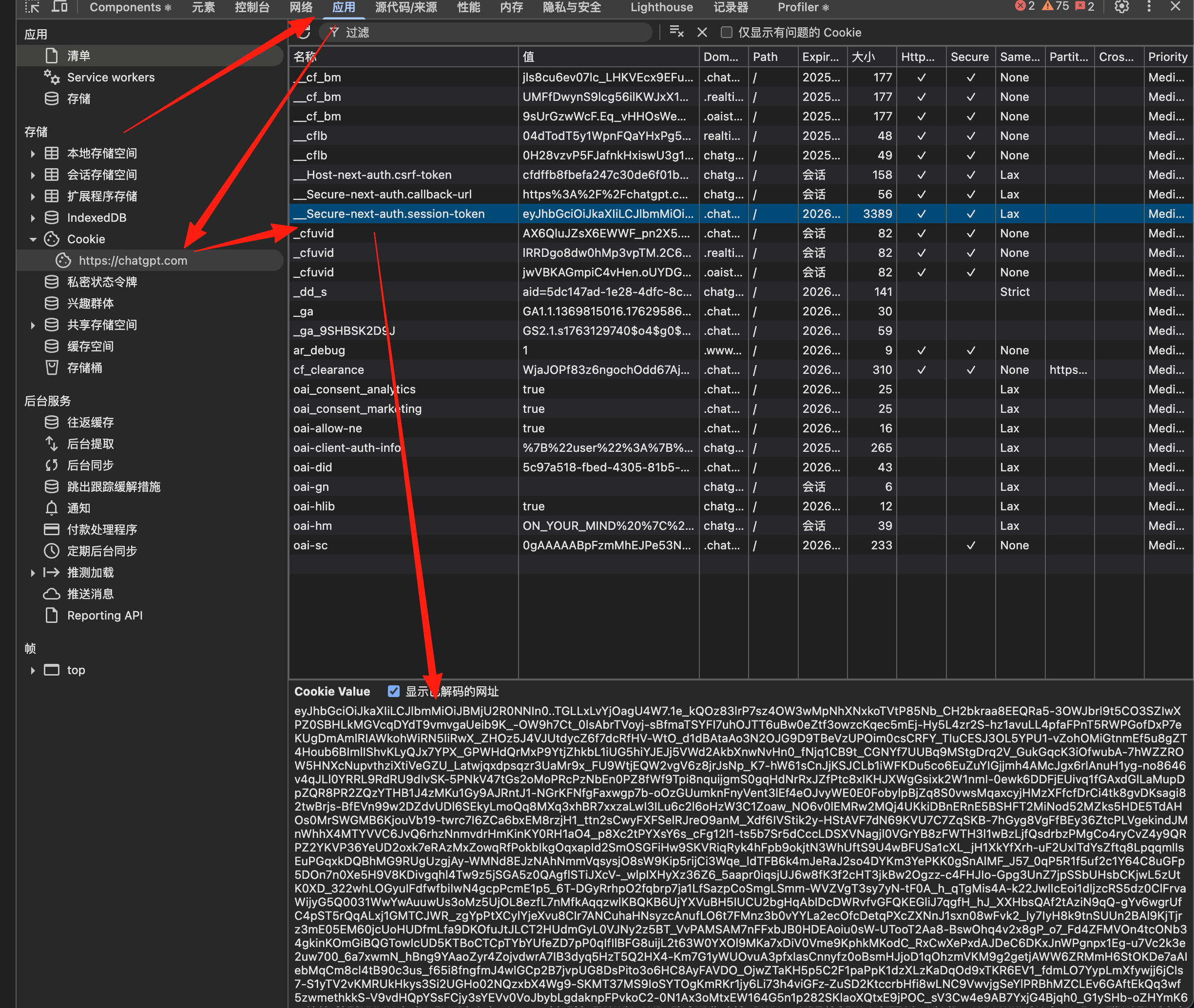 打开 Cursor 官网 控制台,在 Cookie 中找到一个名为 WorkosCursorSessionToken