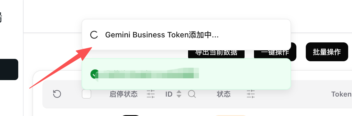 - 在 Token 管理页面的添加 Token 中选择 Gemini Business 平台,一行一个